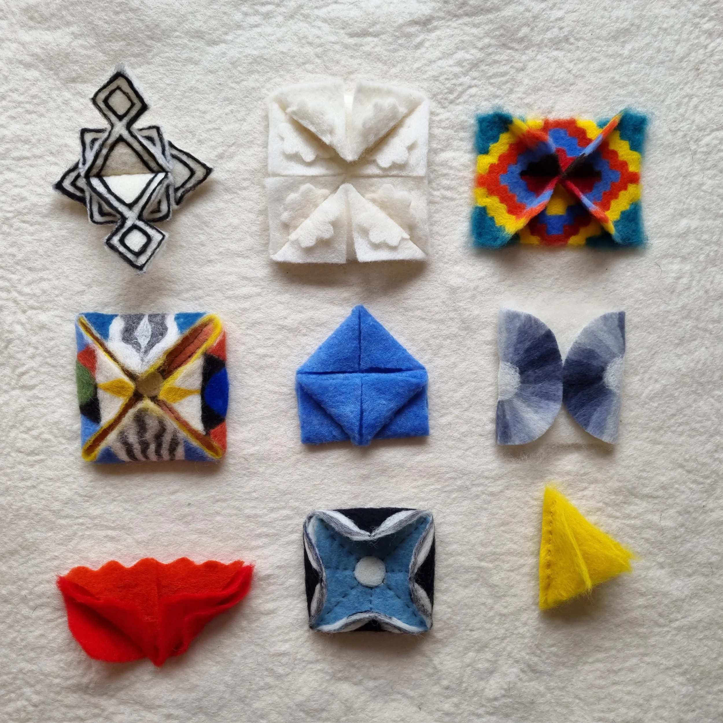 The series "The prayers" is the continuation of the "Metamorphosis | 2023". On the white prayer rug made of felt, in the place where the gaze is usually directed during prayer and the head touches, there is a small folded felt that resembles a butterfly or an envelope. The artist sees prayer as something light and mobile and links herself again to the experience in the cemetery with her aunt and deals with the questions: what is a prayer? What worlds and times does it connect? And how we want to find the purity and sincerity of a child within ourselves during prayer, so that our wishes can have the lightness of a butterfly.